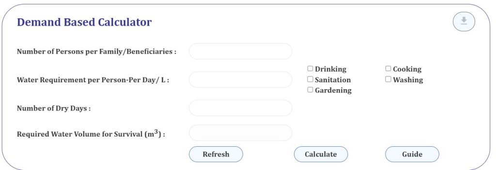 As the cost of domestic rainwater harvesting (DRWH) system depends mainly on the size of the tank, it is important to design the tank to ensure optimum performance at tolerable cost. This mathematical stimulation model developed in collaboration with National Building Research Organization (NBRO) supported by USAID is using historical climate data and physical characteristics of the rain harvesting systems such as roof area, roof surface type, first flush volume, effective storage volume and in-house water demand. to calculate the appropriate capacity of the rain water collection tank. This model will significantly benefit householders, designers and planner in Sri Lanka to design rainwater harvesting system to achieve a reliable and cost effective potable/alternative water source.